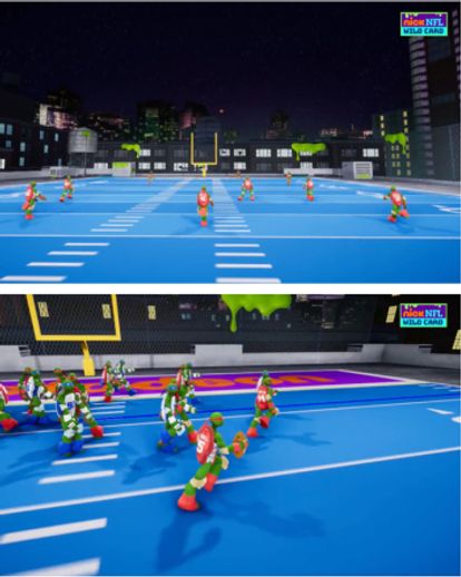 For instance, in partnership with Nickelodeon, CBS, and Next Gen Stats, Beyond Sports live-streamed the 2021 NFL Wildcard Game using an animated 'Blockie Style' alongside the regular match. This resulted in unique footage that appealed to both existing and new fans. While CBS televised the actual game, Nickelodeon featured the animated version, drawing millions of viewers. The broadcast and live graphic design received a 2021 Sports Emmy award. In 2022, a similar approach was taken for the broadcast, but this time the highlights featured 3D-rigged models of the Teenage Mutant Ninja Turtles, partnering with the Nickelodeon animation team.