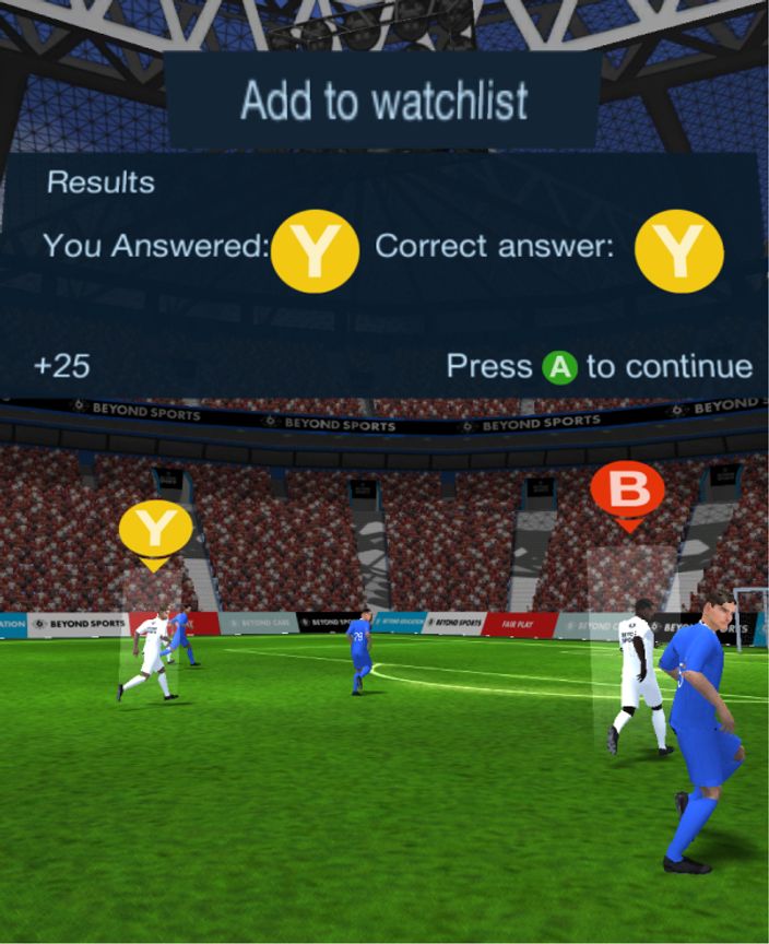 Our commitment to innovation extended well beyond the field. Beyond Sports introduced a range of tools dedicated to enhancing fan engagement, allowing fans to immerse themselves fully in the match experience. They could relive thrilling match highlights from the perspective of their favorite players. Questions like "Would you have passed the ball?" found their answers as fans virtually stepped onto the field. All highlights were accessible on consumers' smartphones, using Google Cardboard or VR headsets to enhance the viewing experience.