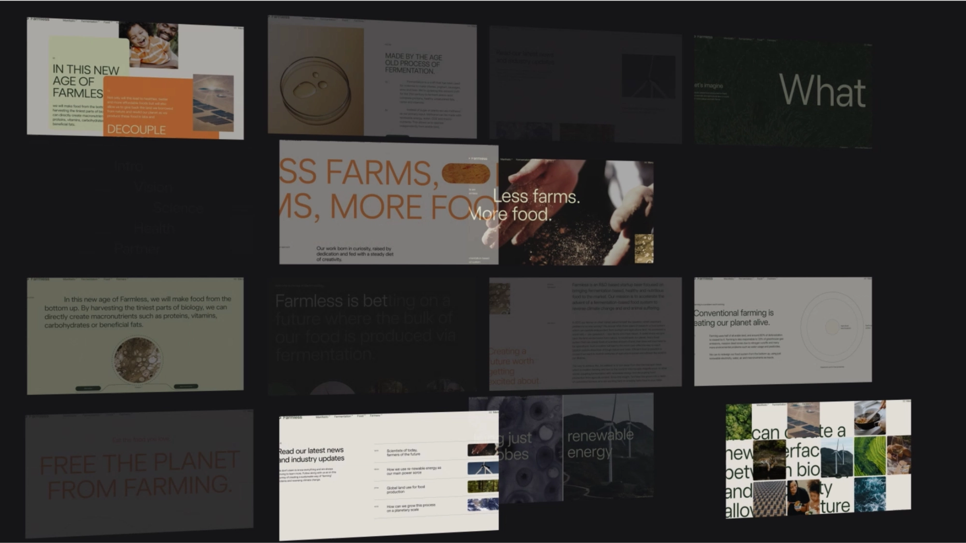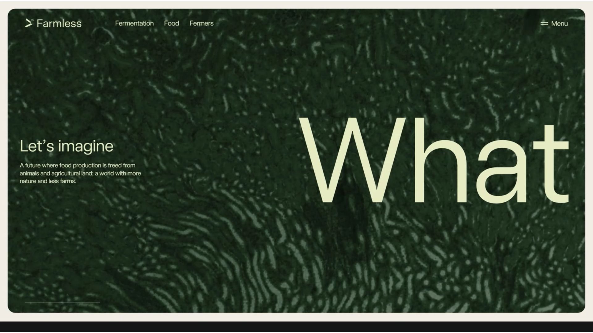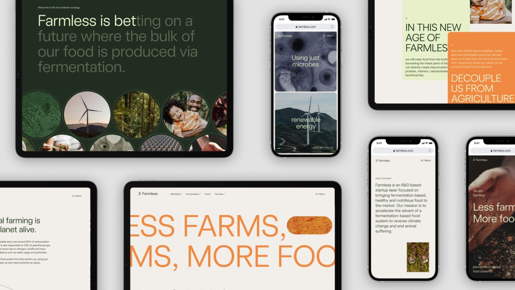 Together with Farmless, we have achieved a new brand that tells a story, educates visitors, and maintains visual creativity. The brand has come to life to invite partners, investors and experts in the tech industry to join the cause. Farmless has been featured in Techcrunch and has raised a €1.2 million pre-seed equity round at an undisclosed valuation to bring to our tables proteins created without the need for traditional farming operations. With the website now live we want to thank Farmless team for the great collaboration.