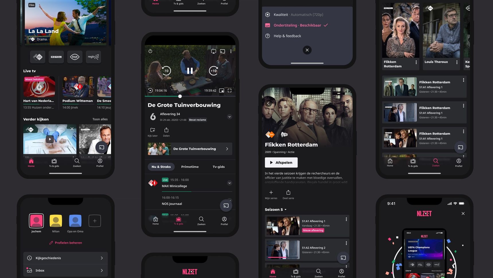 The renewed NLZIET platform enables access to the most complete and current Dutch TV offerings online, both on-demand and live. By blending these features, NLZIET created a service that fits perfectly in the media consumption of the new generation. It delivers the highest quality content from all channels directly to the user's preferred device, spanning mobile, web, SmartTV, Chromecast, AndroidTV, AppleTV, FireTV, and more.