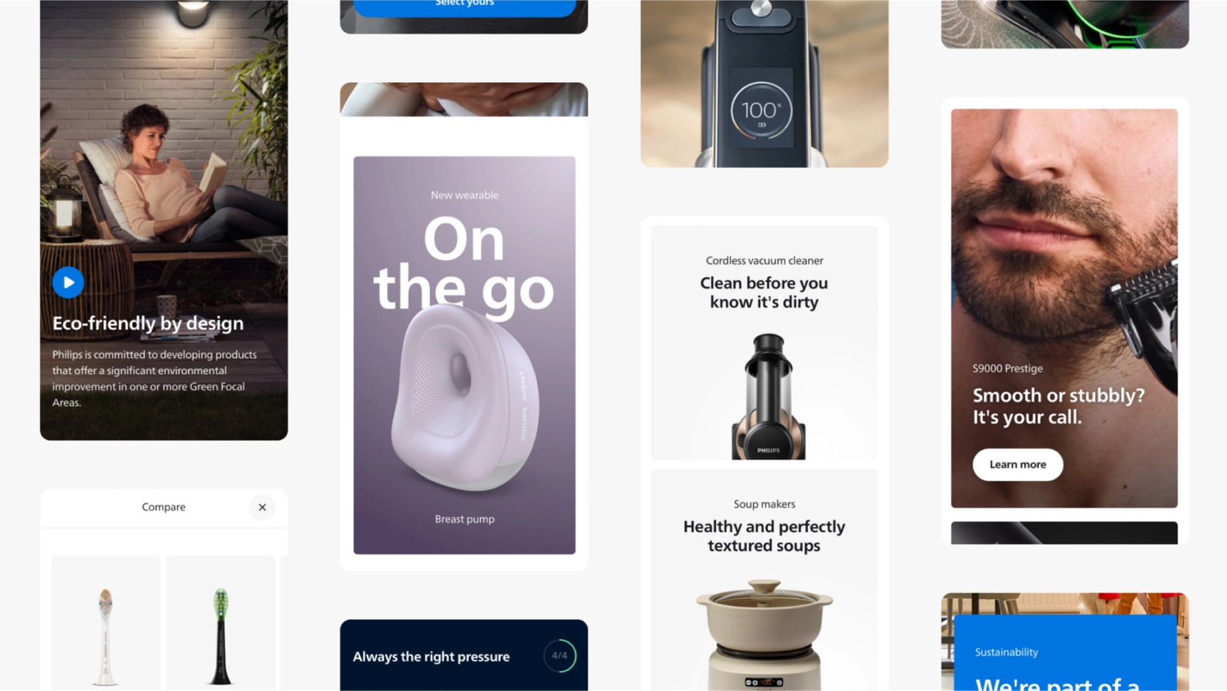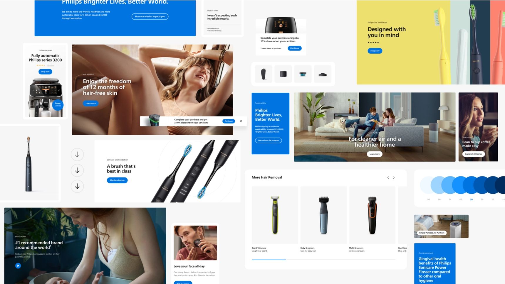Then we translated our concepts into detailed design templates, emphasising scalability across Philips’ vast product catalogue and markets, and balancing standardisation with flexibility throughout the entire process.