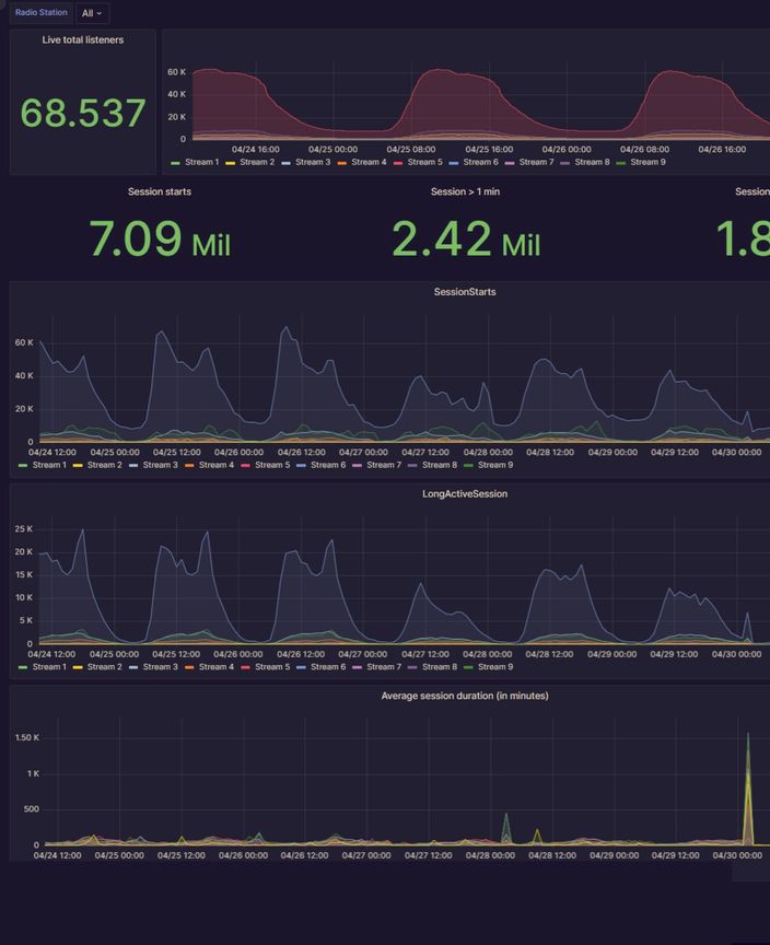 Non-stop stabilityQmusic's original streaming infrastructure was showing signs of aging, leading to buffering problems, dropped connections, and sudden listener drop-offs. The new platform we developed ensures stability, both now and in the future, even as the station's audience continues to expand. We also guide Qmusic in selecting the most suitable connection lines, directly linking them to our data center to maintain optimal platform performance at all times.02