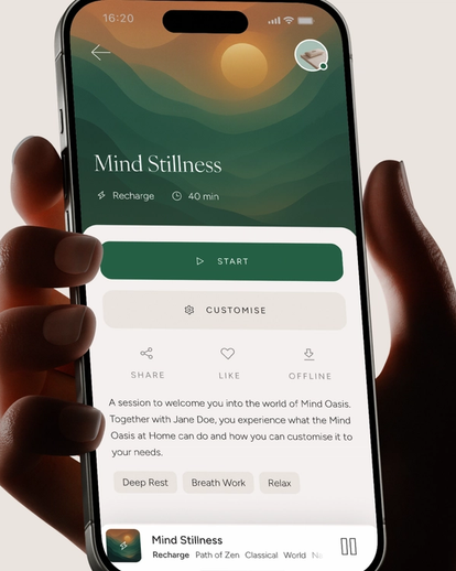 Over 25 years, Rituals has built a strong presence in retail, e-commerce, and hospitality partnerships. With Mind Oasis, a new line of business was added to this portfolio. The initial ambition for Mind Oasis At Home was clear: to translate and extend Rituals’ signature brand experience, letting customers enjoy the little things in life and feel good, into a companion app. Our earlier collaboration on the Perfume Genie gave us a strong starting point.