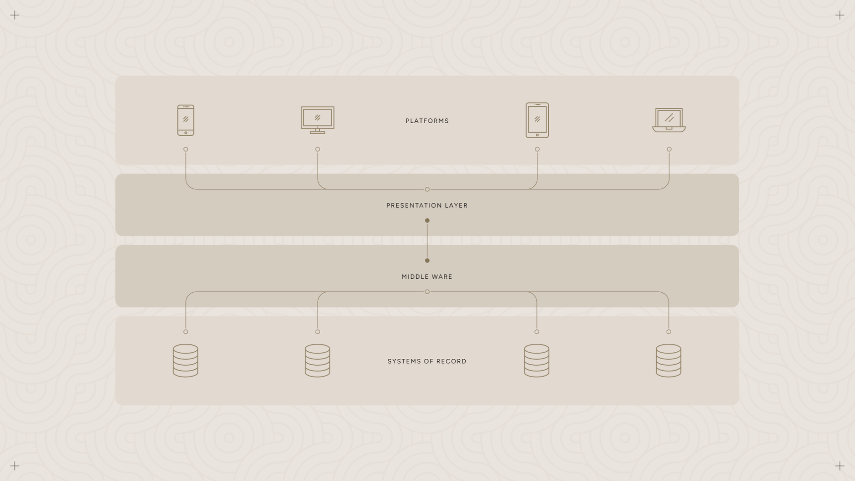 To ensure stability and scalability, we introduced a resilient middle layer between the user interface and the backend. Acting as the central hub, it aggregates data from multiple sources, reduces complexity, and enforces a clear separation of responsibilities across the application. The result is a stable and maintainable architecture, with server-to-server connections powering every digital touchpoint.