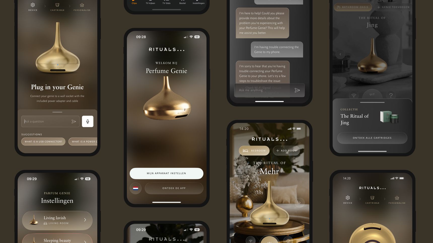 The Perfume Genie is Rituals' iconic smart aroma diffuser, controlled remotely via a dedicated app. The initial launch of the Perfume Genie went smoothly, but the evolving demands of a second-generation product brought new complexities that challenged the digital experience.